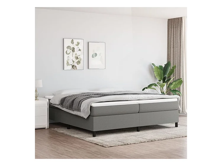 Sommier à lattes de lit avec matelas Gris foncé 200x200 Tissu