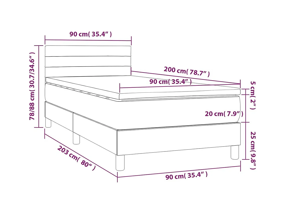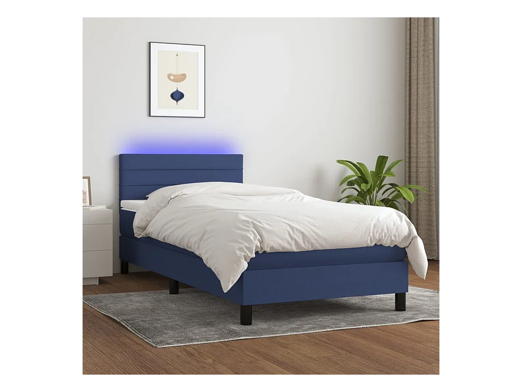 Sommier à lattes de lit avec matelas LED Bleu 90x200 Tissu
