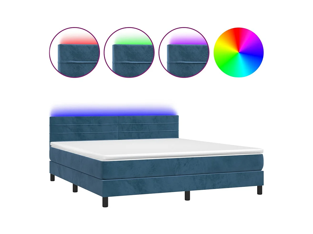 Sommier à lattes de lit avec matelas LED Bleu foncé 160x200