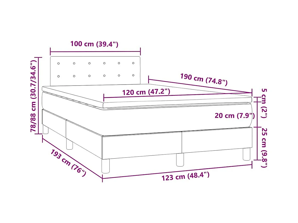 Sommier à lattes de lit avec matelas LED cappuccino 120x190 cm