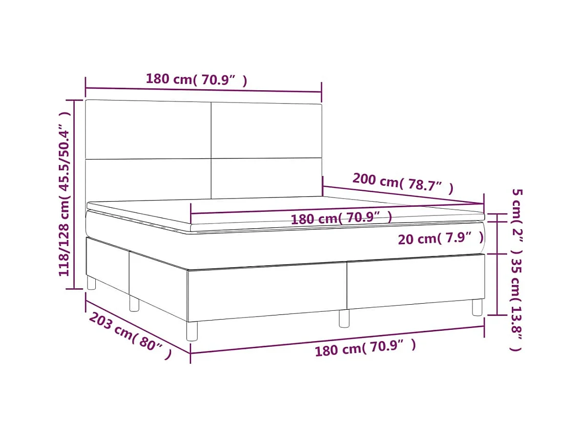 Sommier à lattes de lit avec matelas LED Cappuccino 180x200