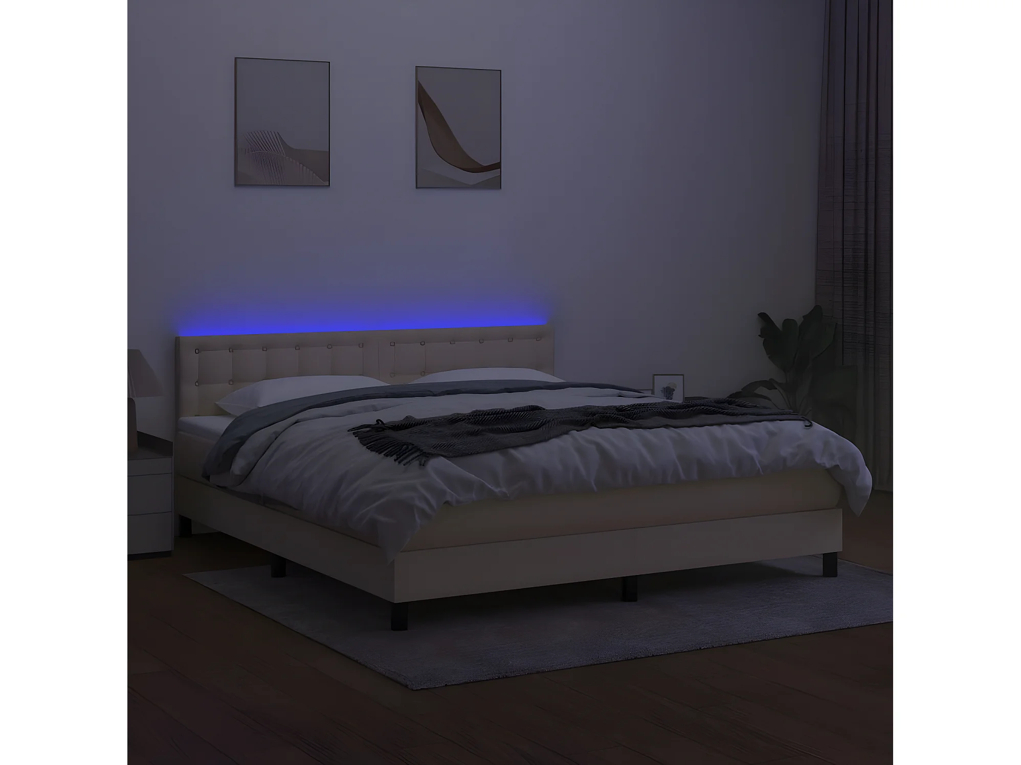 Sommier à lattes de lit avec matelas LED Crème 180x200 Tissu
