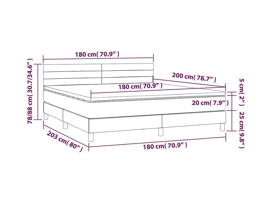 Sommier à lattes de lit avec matelas LED Gris clair 180x200