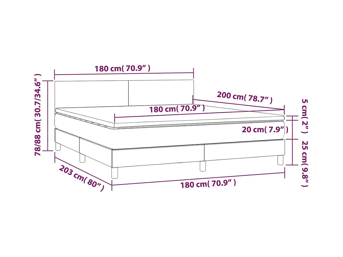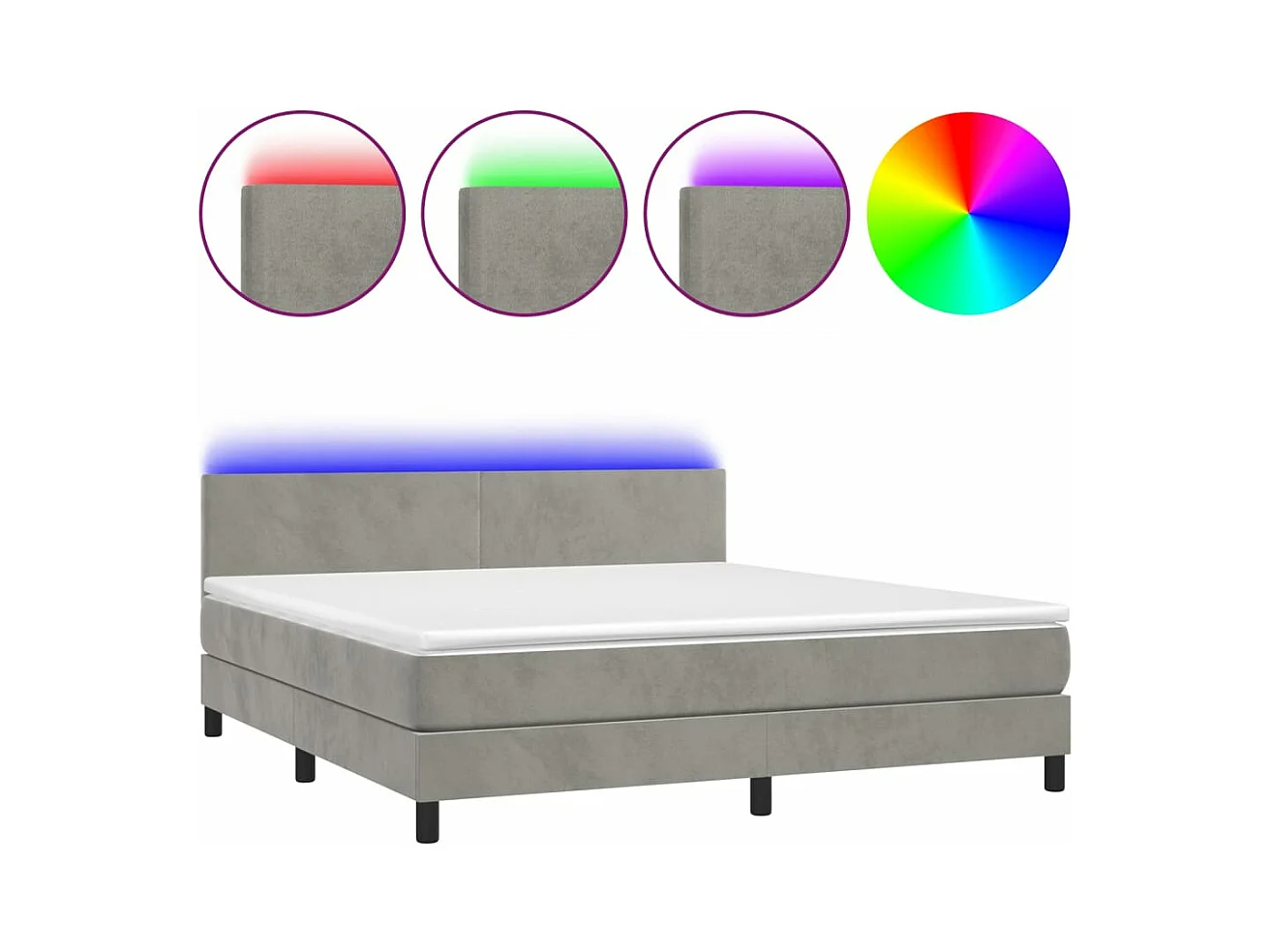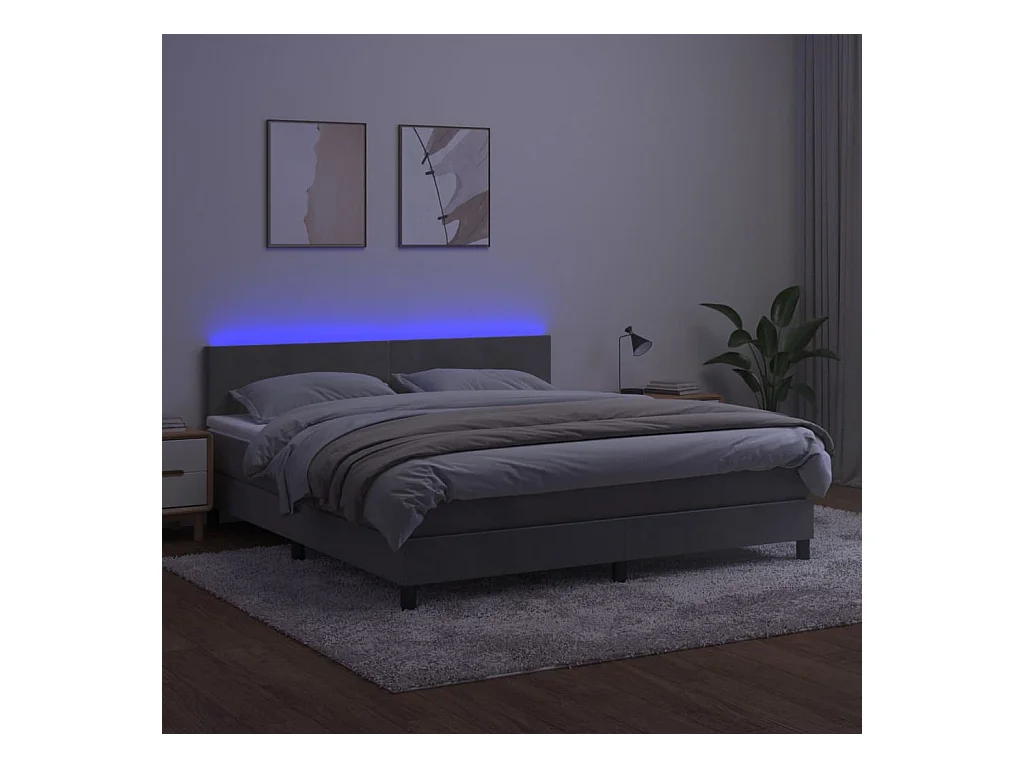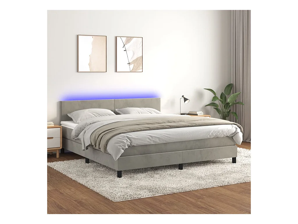 Sommier à lattes de lit avec matelas LED Gris clair 180x200