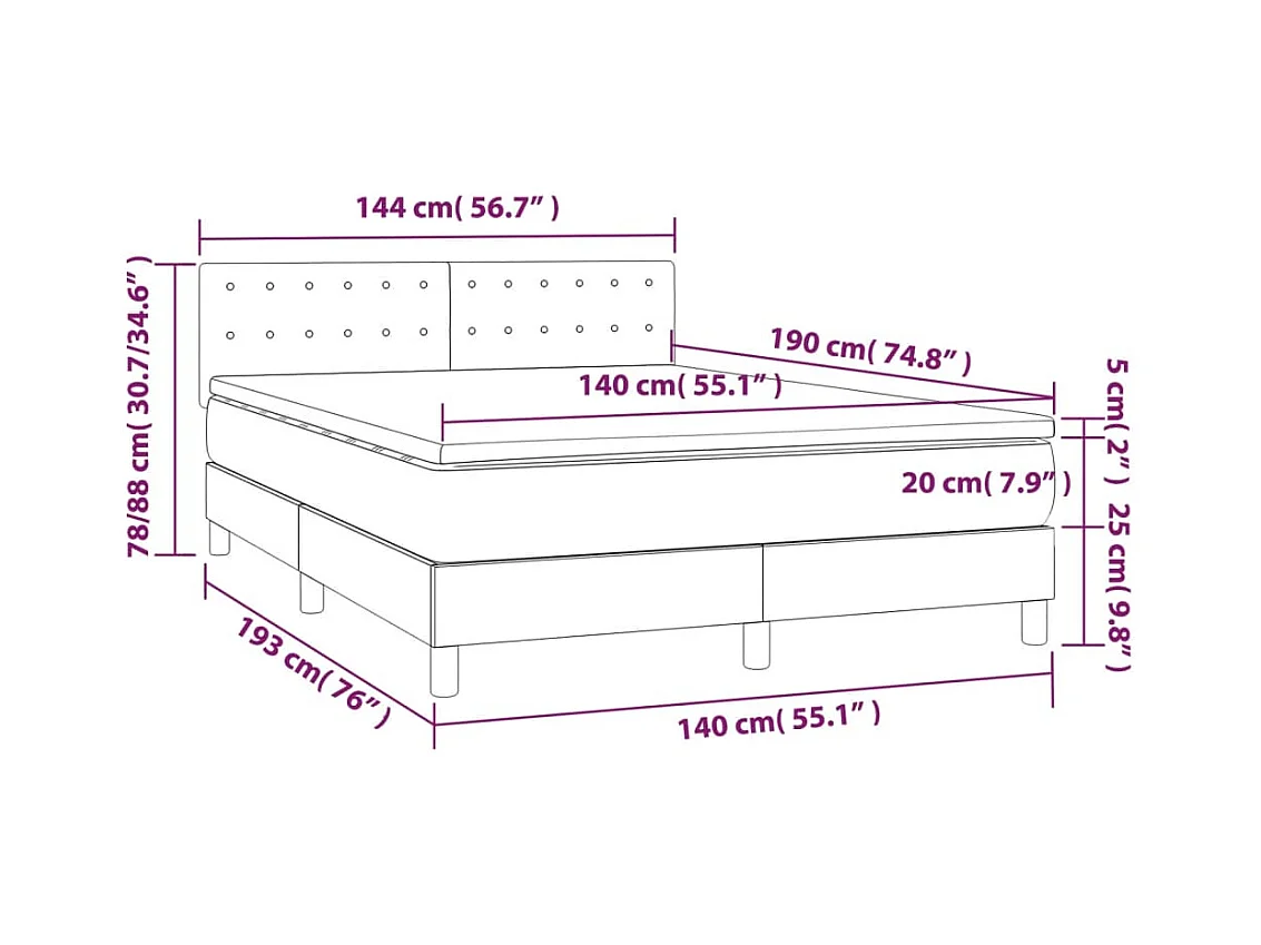 Sommier à lattes de lit avec matelas LED Taupe 140x190 Tissu