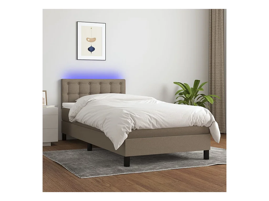 Sommier à lattes de lit avec matelas LED Taupe 90x200 Tissu
