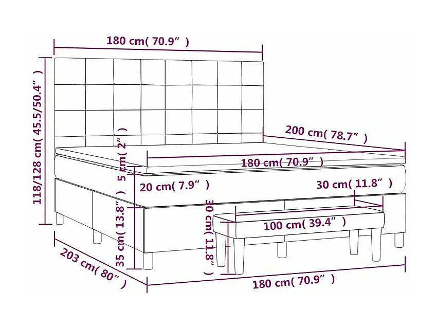 Sommier à lattes de lit avec matelas Marron foncé 180x200