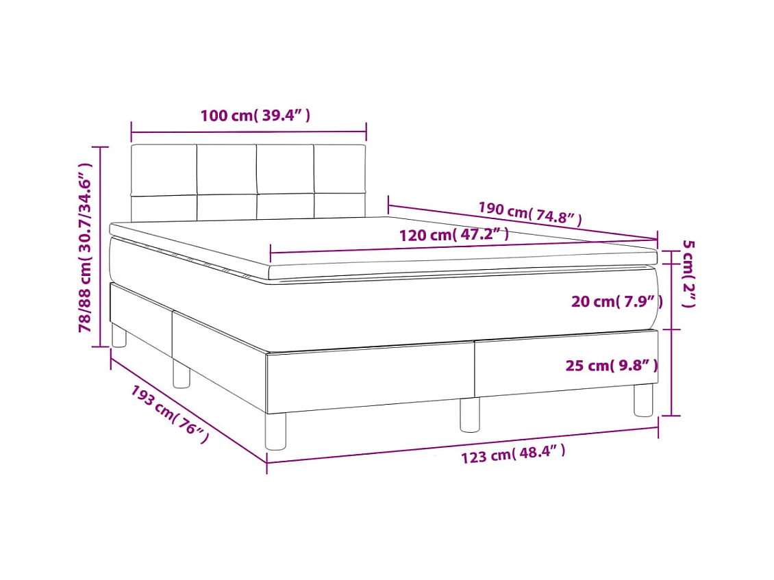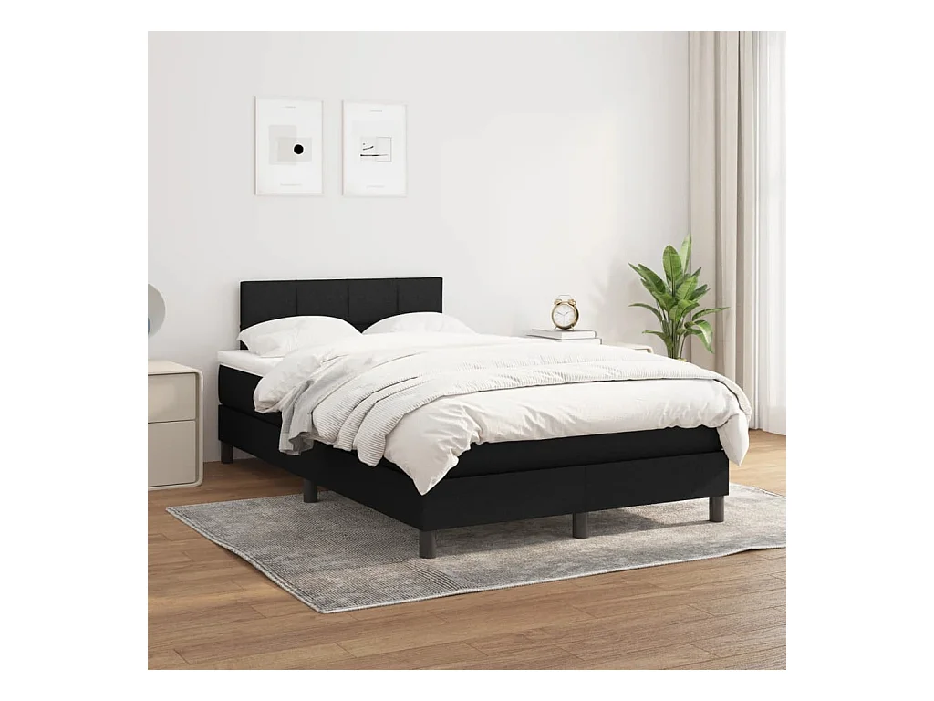 Sommier à lattes de lit avec matelas noir 120x190 tissu