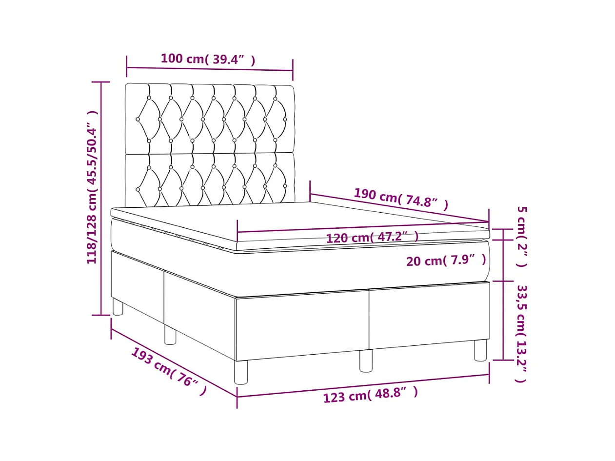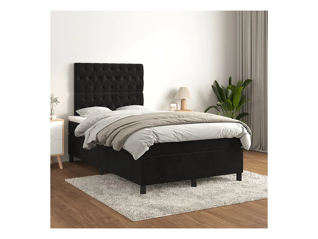 Sommier à lattes de lit avec matelas noir 120x190 velours