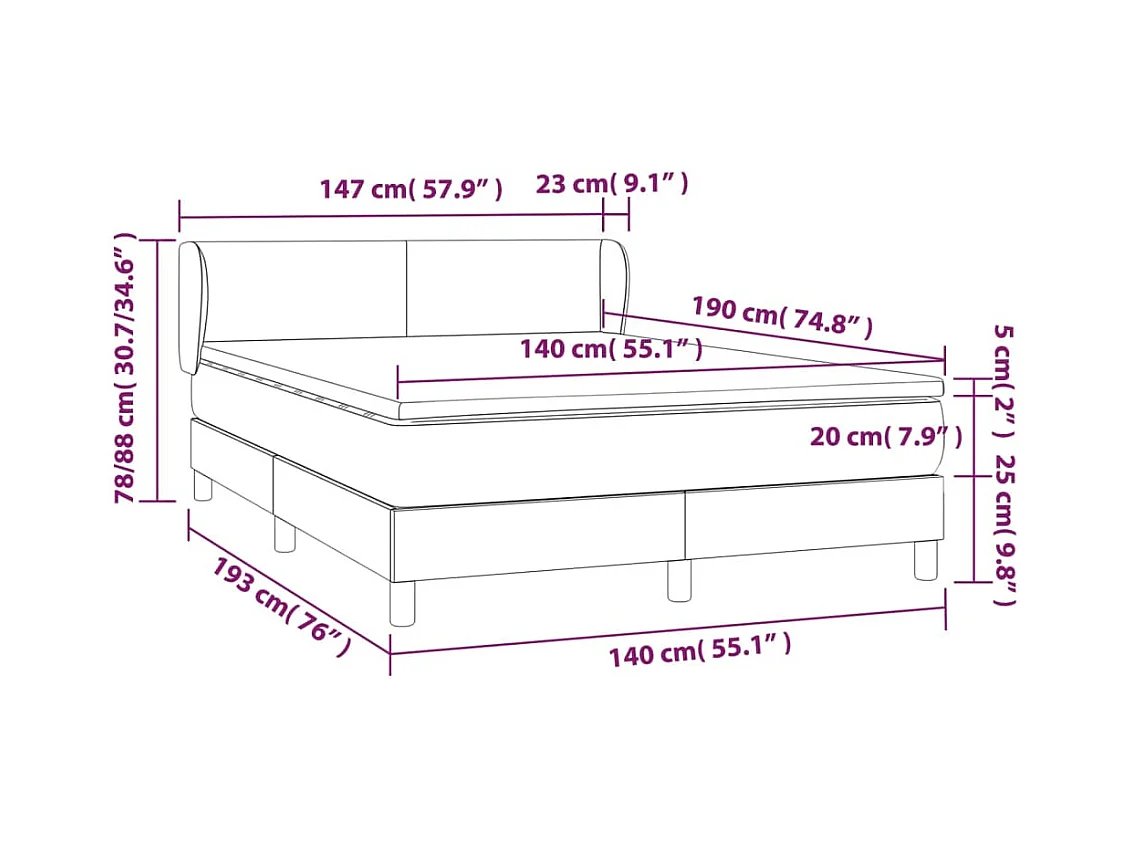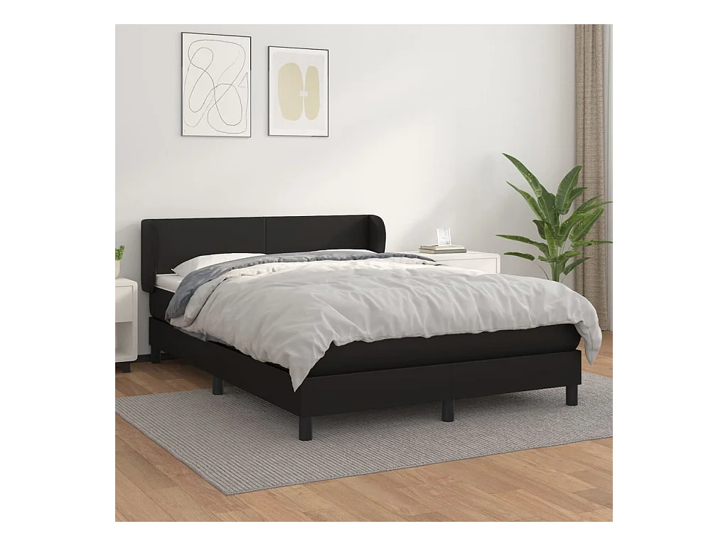 Sommier à lattes de lit avec matelas Noir 140x190 Similicuir