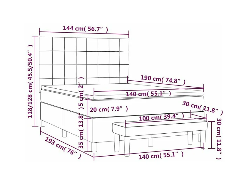 Sommier à lattes de lit avec matelas Noir 140x190 Tissu
