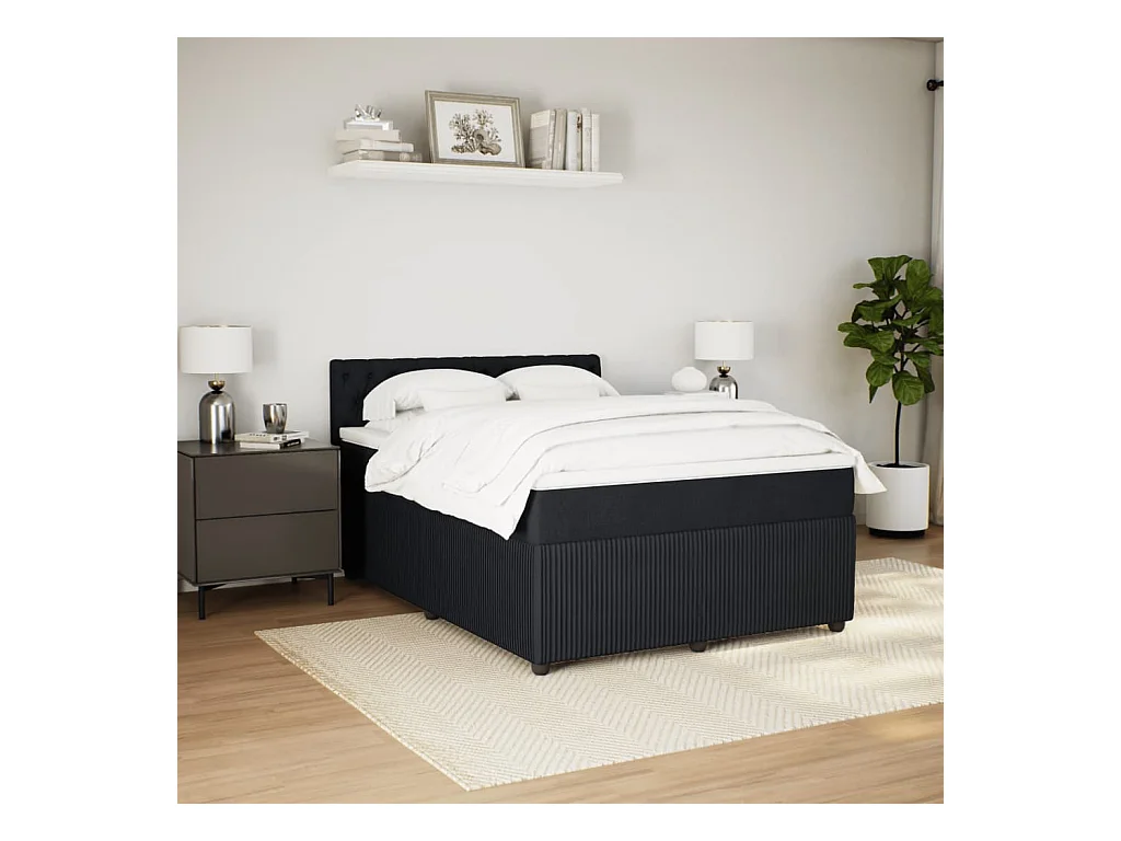 Sommier à lattes de lit avec matelas Noir 140x200 cm Velours