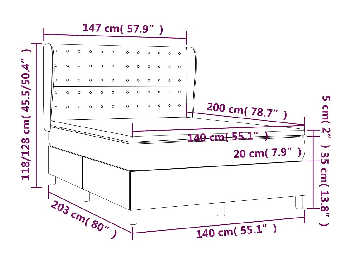 Sommier à lattes de lit avec matelas Noir 140x200 Similicuir