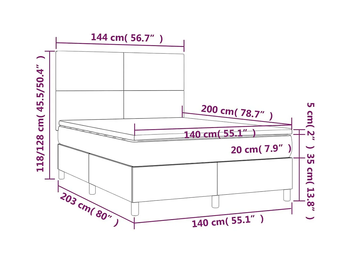 Sommier à lattes de lit avec matelas Noir 140x200 Similicuir