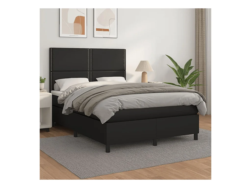 Sommier à lattes de lit avec matelas Noir 140x200 Similicuir