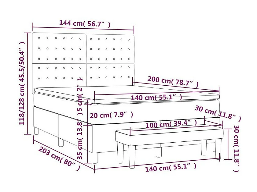 Sommier à lattes de lit avec matelas Noir 140x200 Tissu
