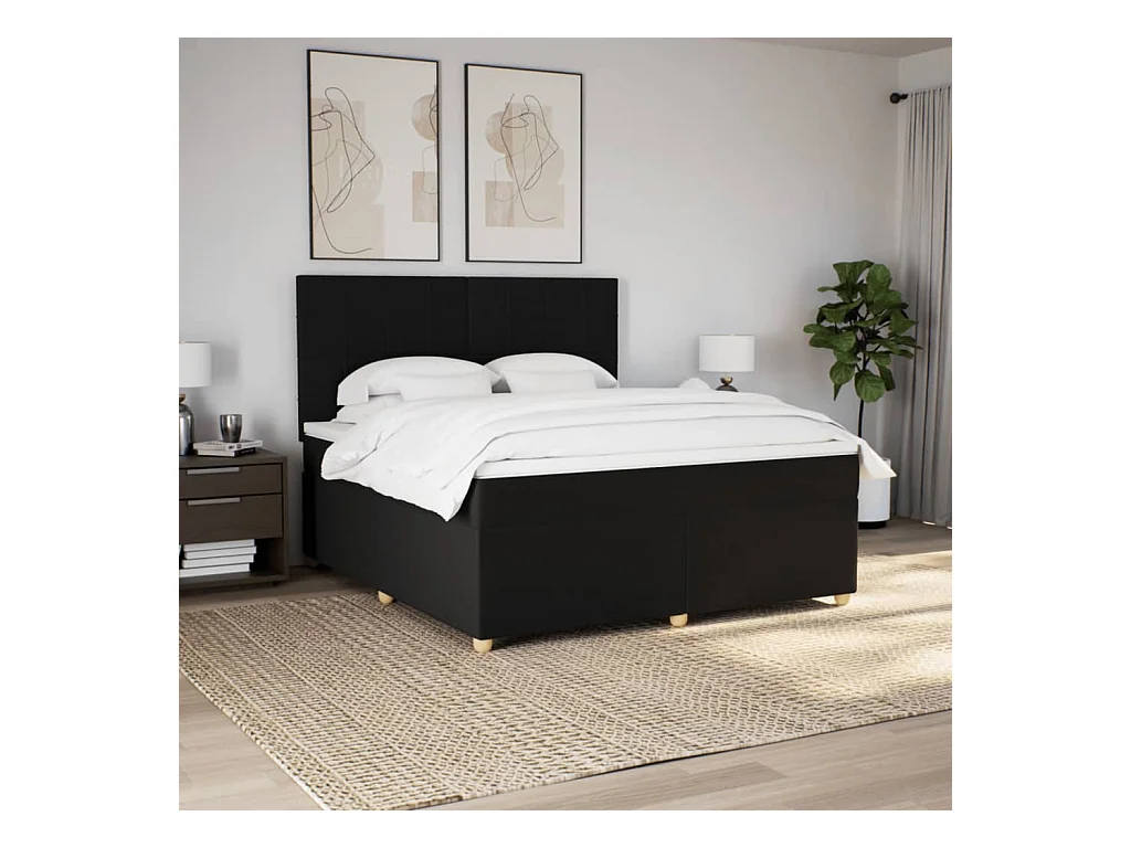 Sommier à lattes de lit avec matelas Noir 180x200 cm Tissu