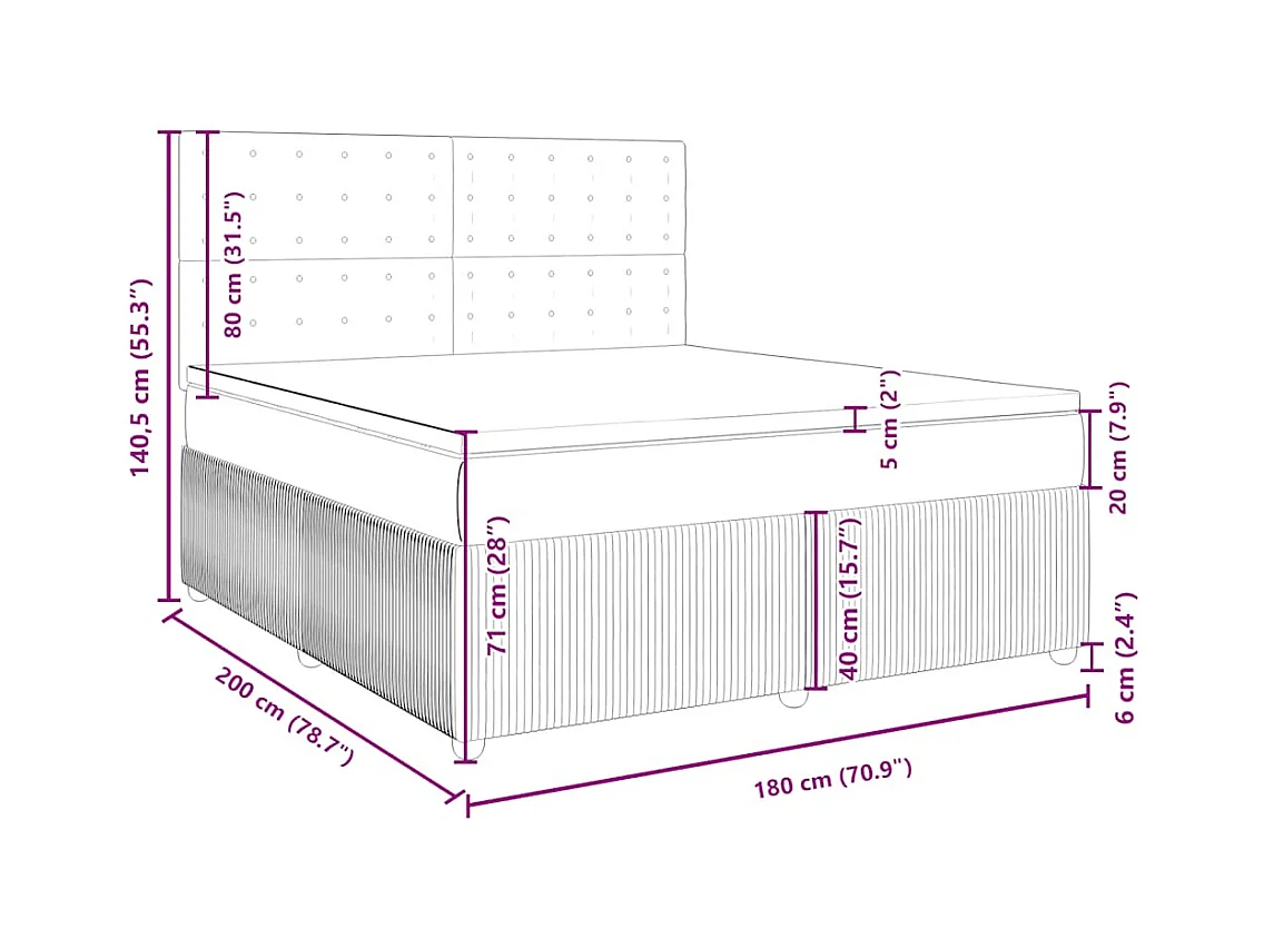 Sommier à lattes de lit avec matelas Noir 180x200 cm Velours