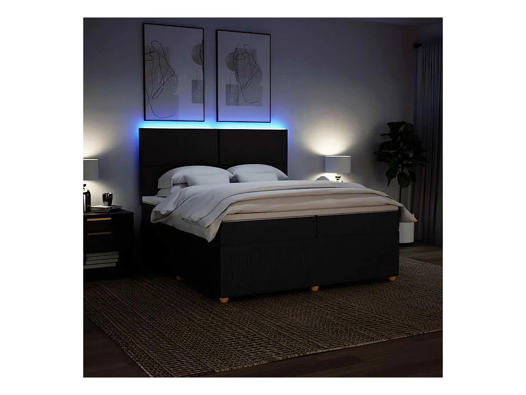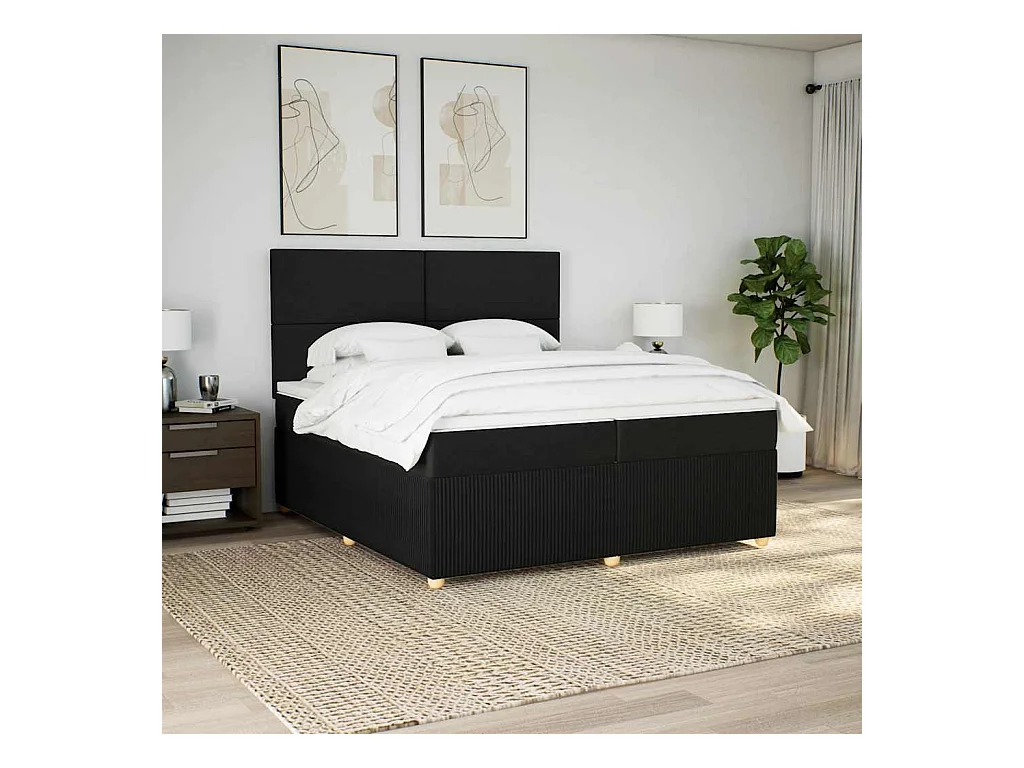 Sommier à lattes de lit avec matelas Noir 200x200 cm Tissu