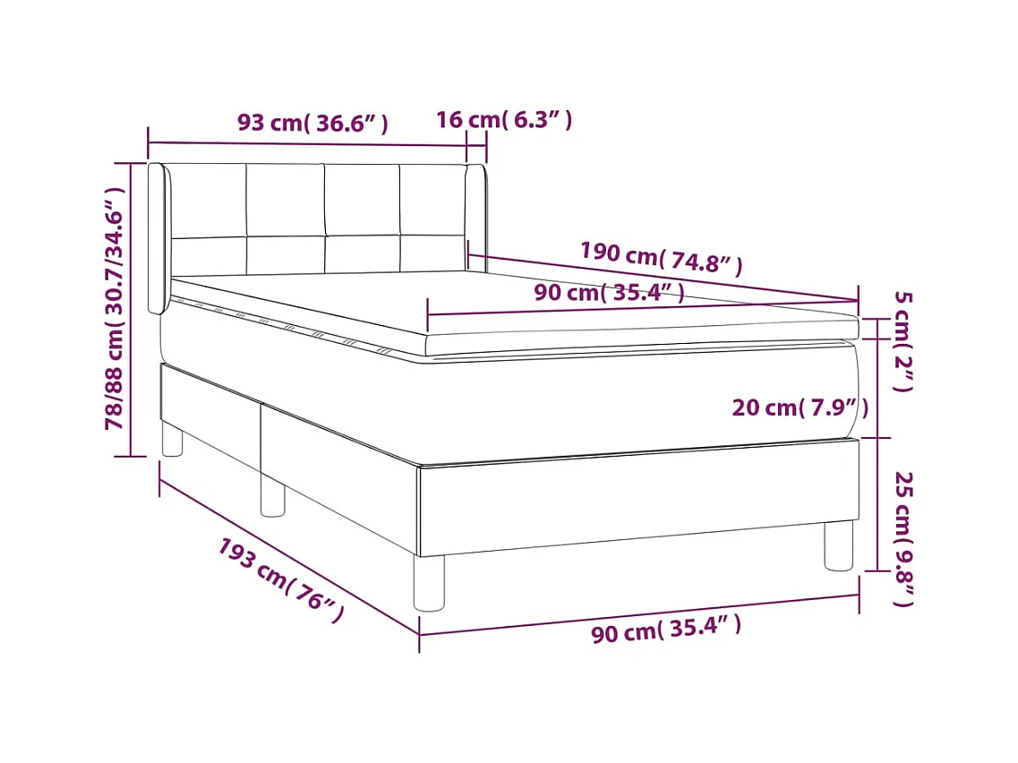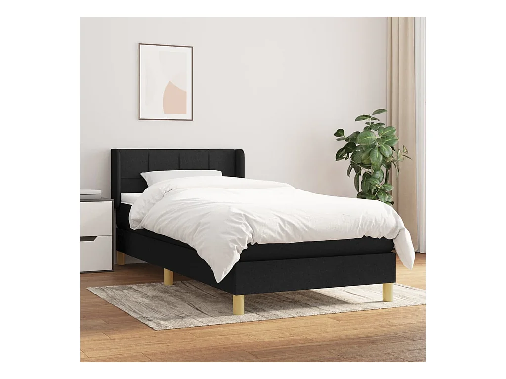Sommier à lattes de lit avec matelas Noir 90x190 Tissu