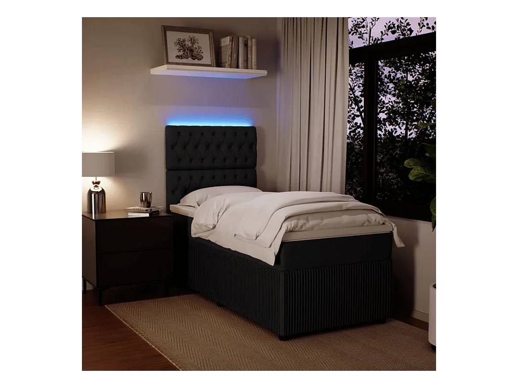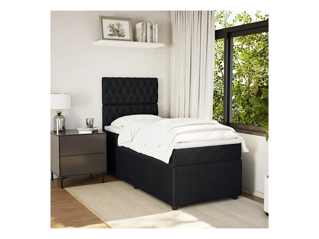 Sommier à lattes de lit avec matelas Noir 90x200 cm Velours