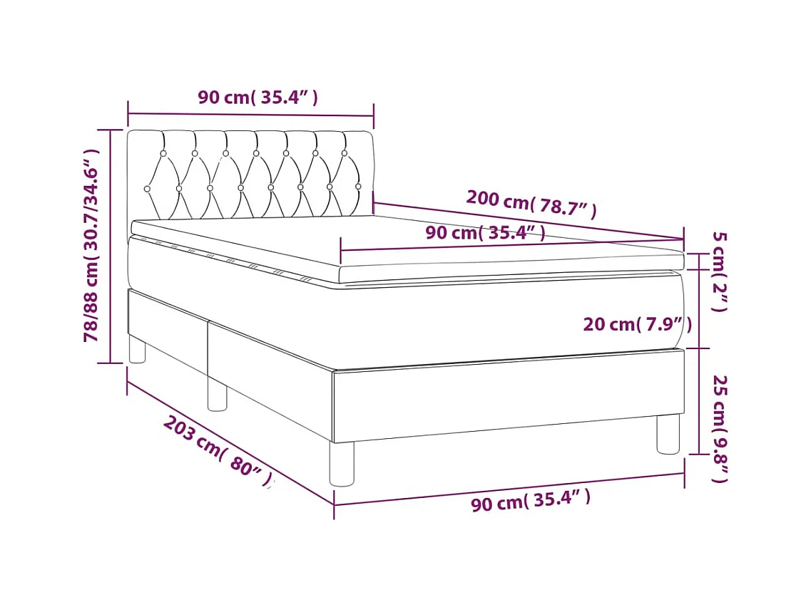 Sommier à lattes de lit avec matelas Noir 90x200 Tissu