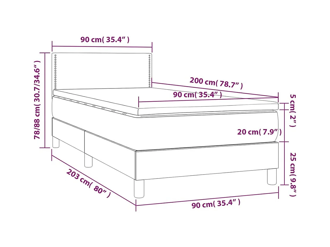 Sommier à lattes de lit avec matelas Noir 90x200 Tissu