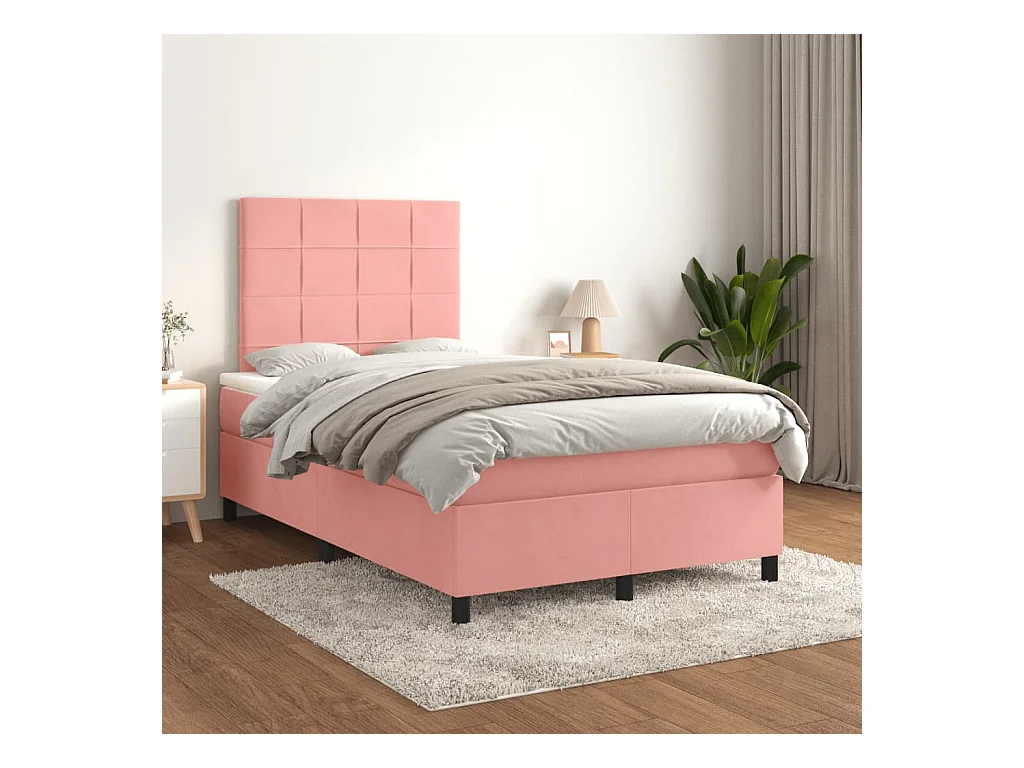 Sommier à lattes de lit avec matelas rose 120x190 velours
