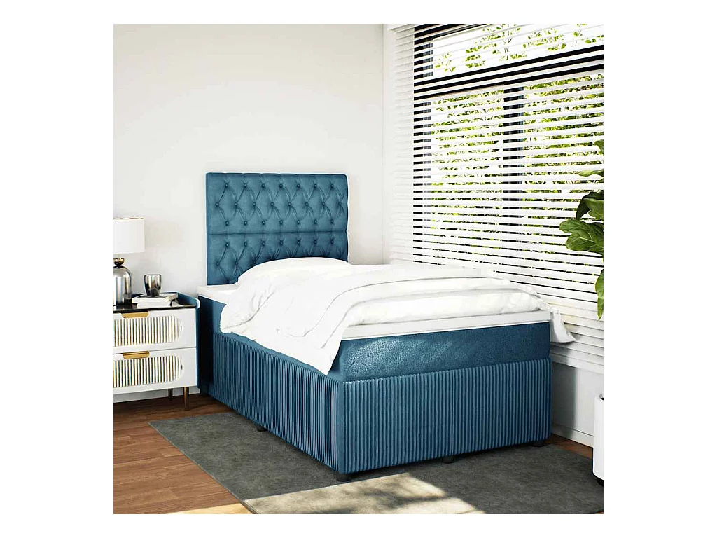 Sommier à lattes de lit et matelas bleu 120x200 cm velours