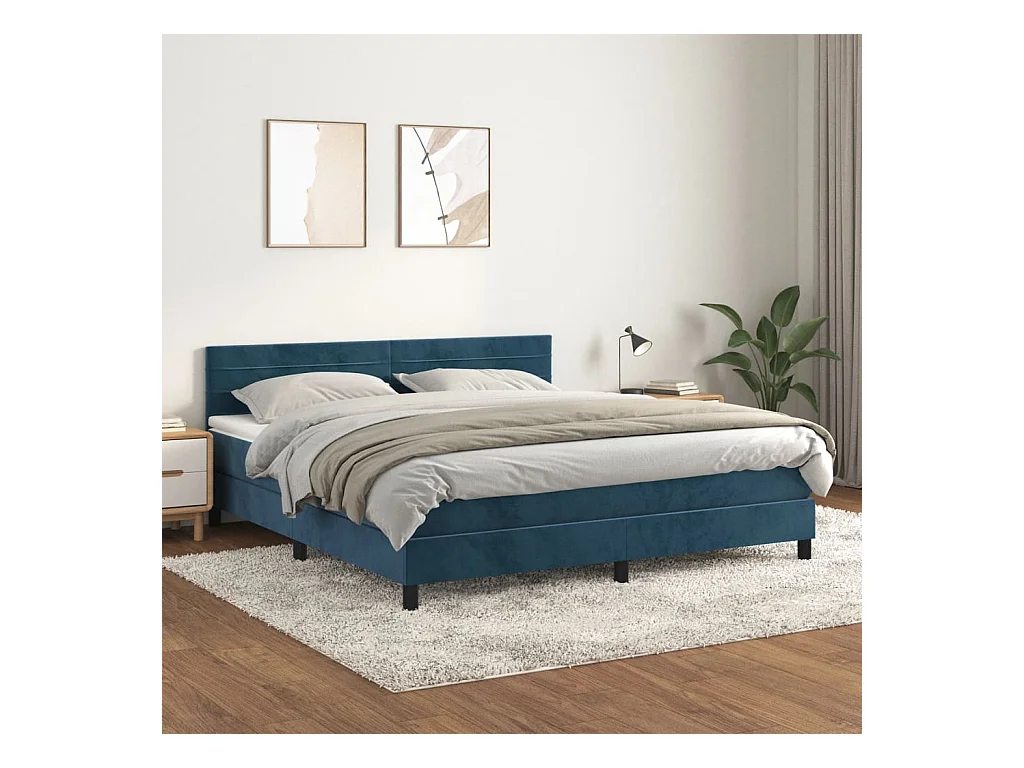 Sommier à lattes de lit et matelas Bleu foncé 160x200 Velours