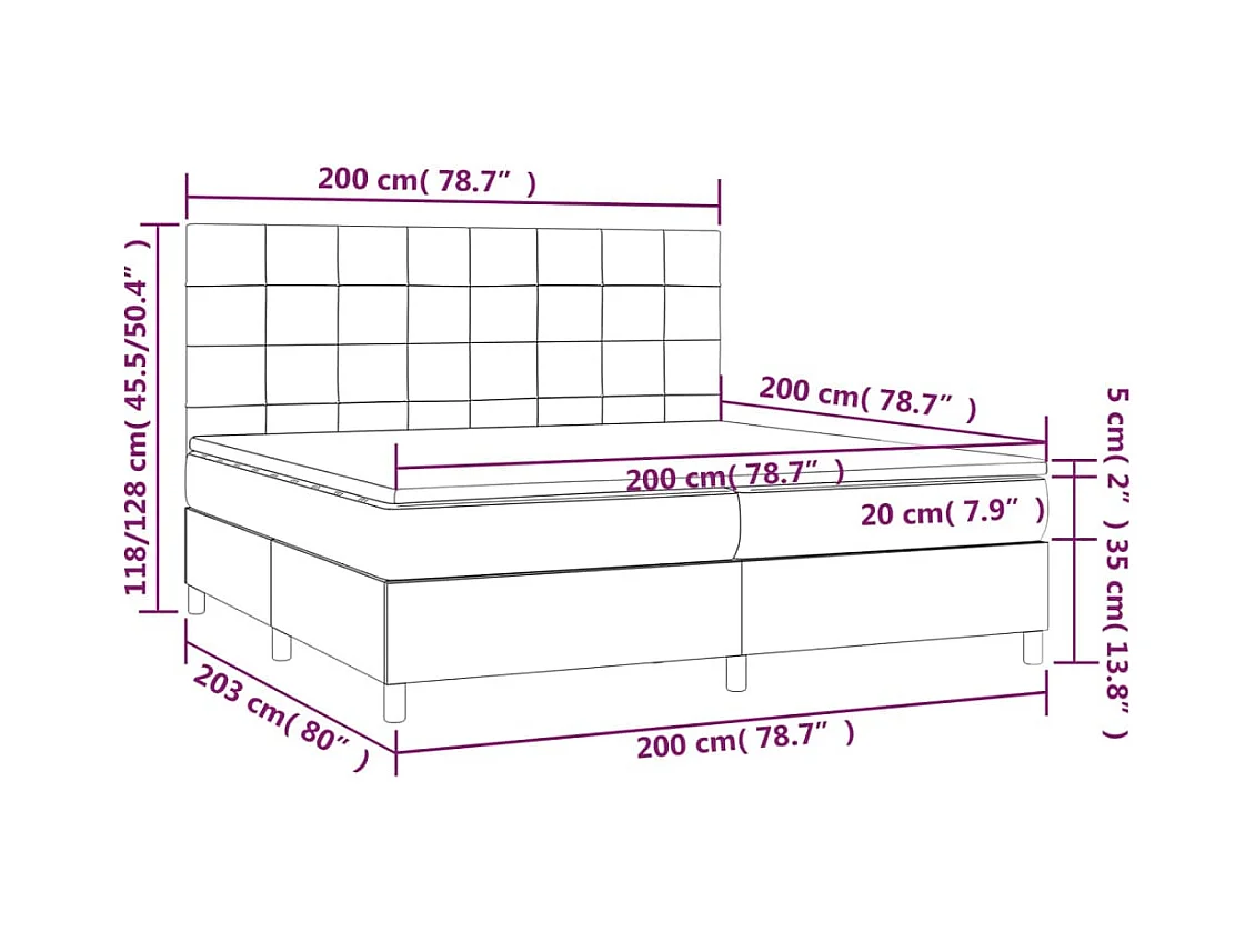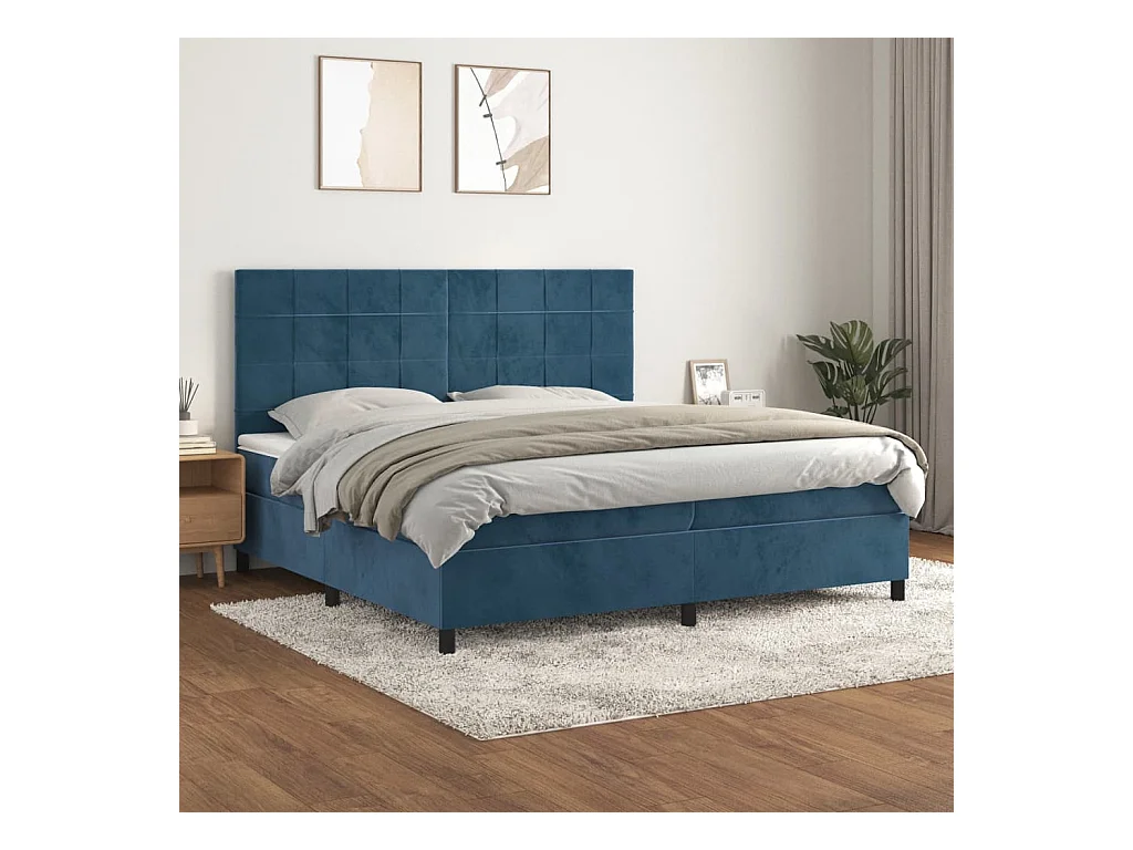 Sommier à lattes de lit et matelas Bleu foncé 200x200 Velours
