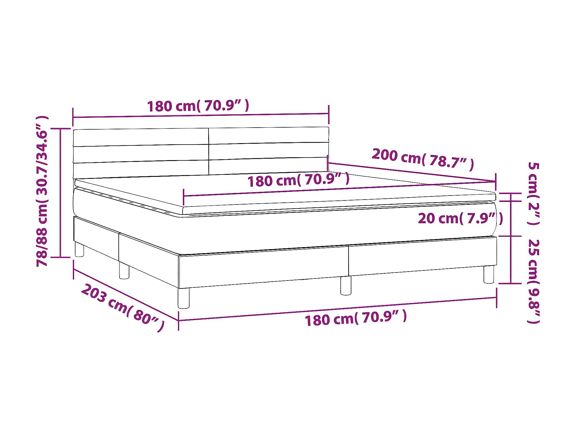 Sommier à lattes de lit et matelas et LED Gris foncé 180x200