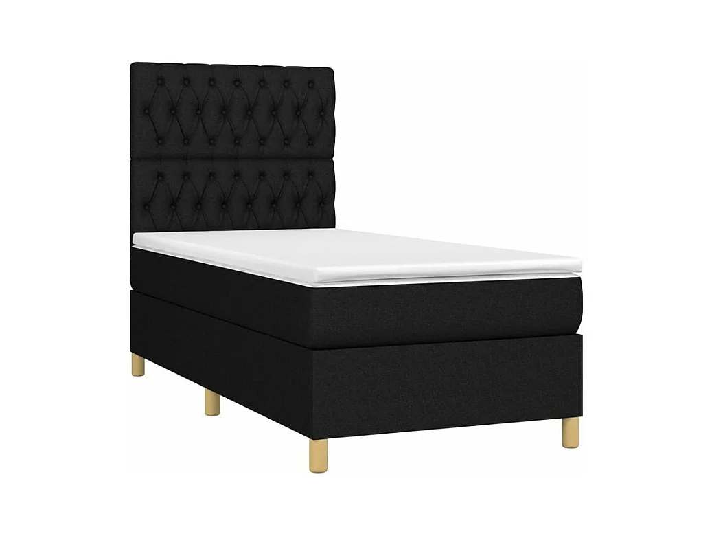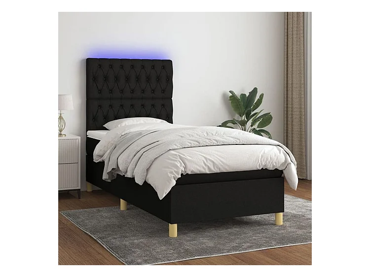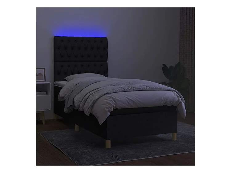 Sommier à lattes de lit et matelas et LED Noir 100x200 Tissu