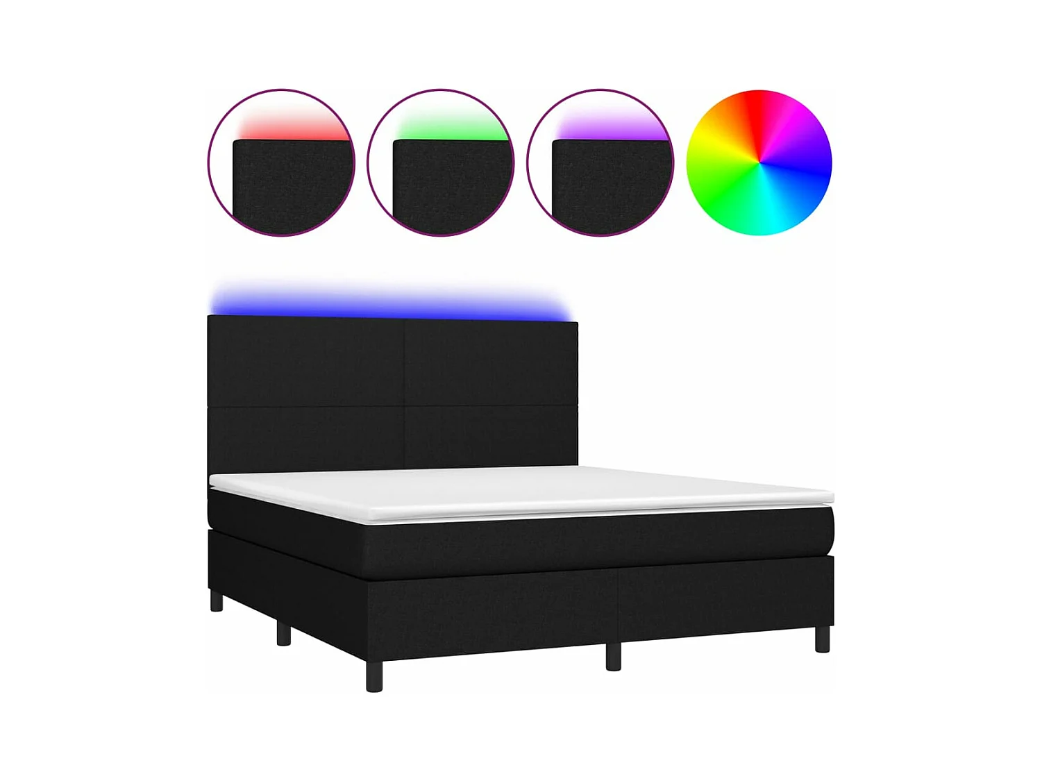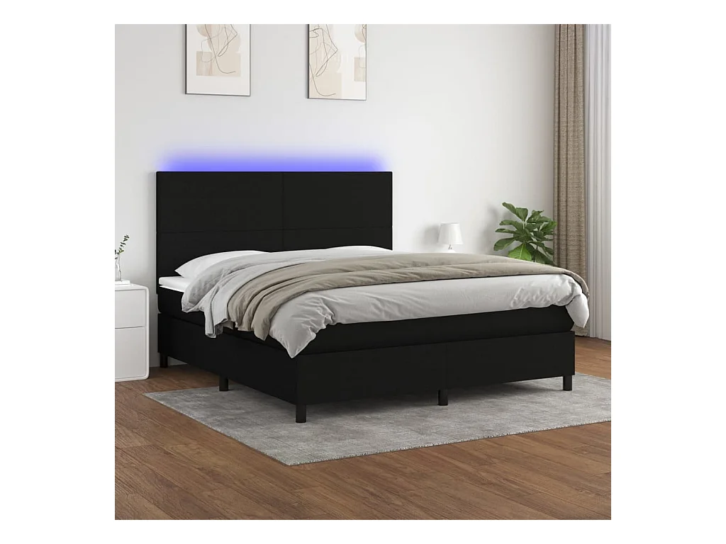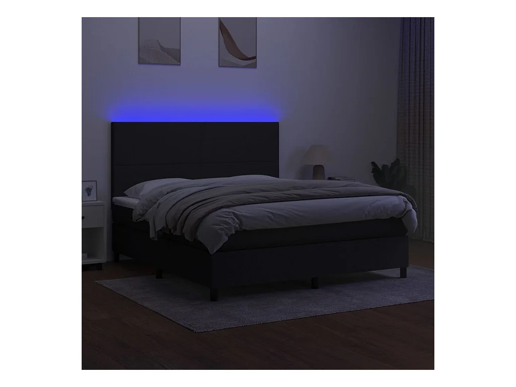 Sommier à lattes de lit et matelas et LED Noir 180x200 Tissu