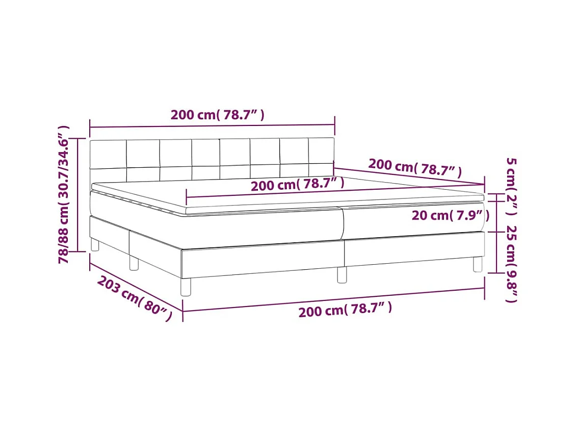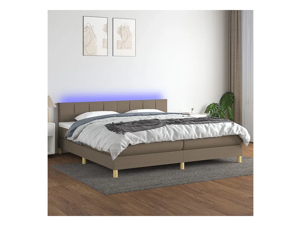 Sommier à lattes de lit et matelas et LED Taupe 200x200cm Tissu