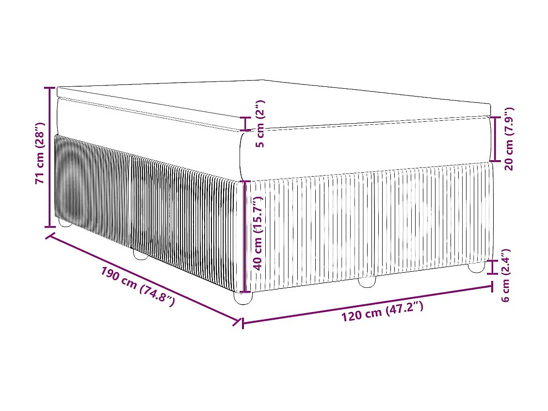 Sommier à lattes de lit et matelas gris clair 120x190cm velours