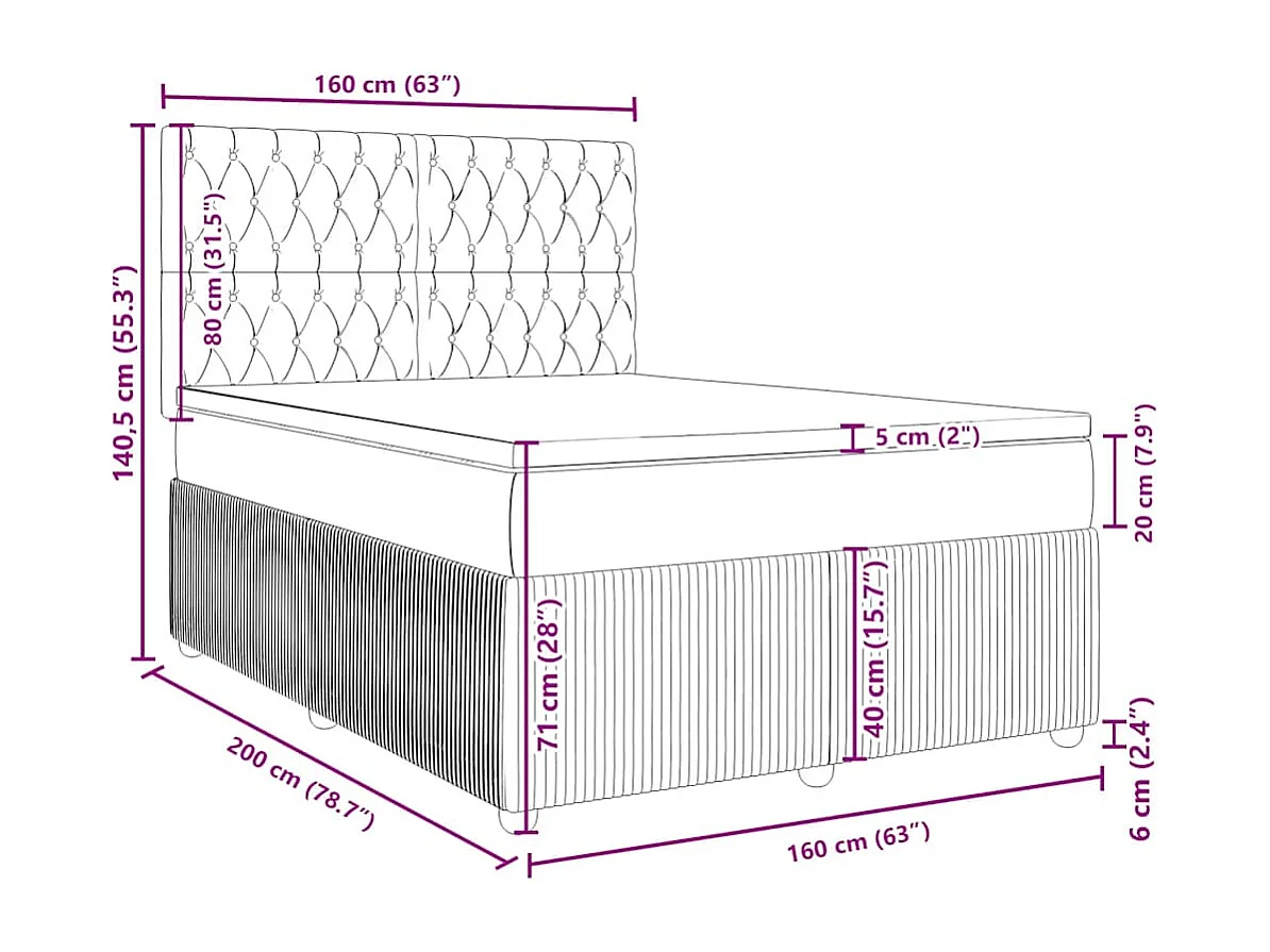 Sommier à lattes de lit et matelas Gris clair 160x200cm Velours