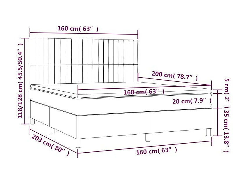 Sommier à lattes de lit et matelas Gris foncé 160x200 Velours