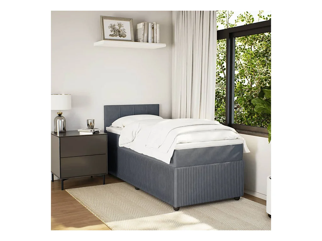 Sommier à lattes de lit et matelas Gris foncé 90x190 cm Velours