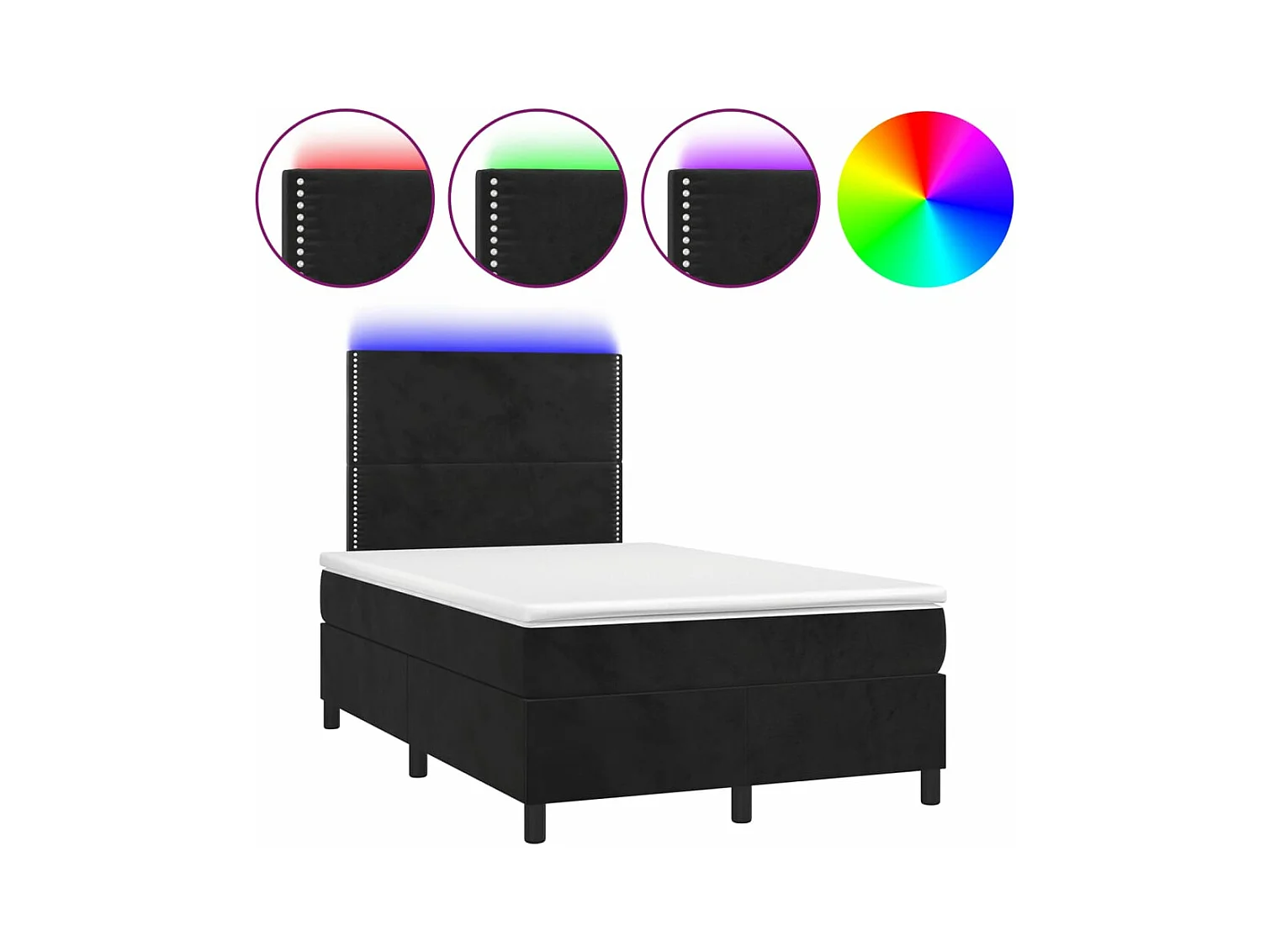 Sommier à lattes de lit et matelas LED noir 120x190 velours
