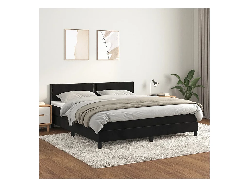 Sommier à lattes de lit et matelas Noir 160x200 Velours