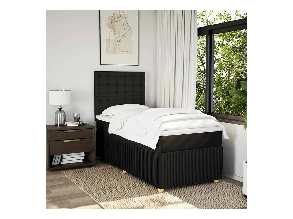 Sommier à lattes de lit et matelas Noir 80x200 cm Tissu