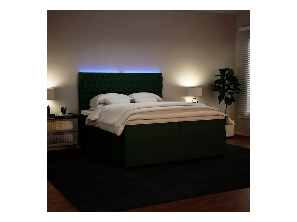 Sommier à lattes de lit et matelas Vert foncé 200x200cm Velours