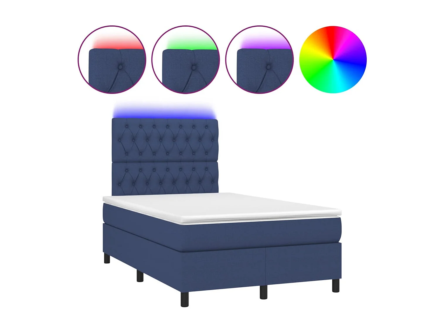 Sommier à lattes de lit matelas et LED bleu 120x190 cm tissu