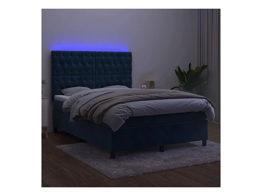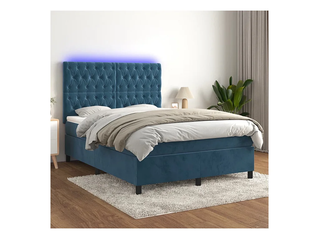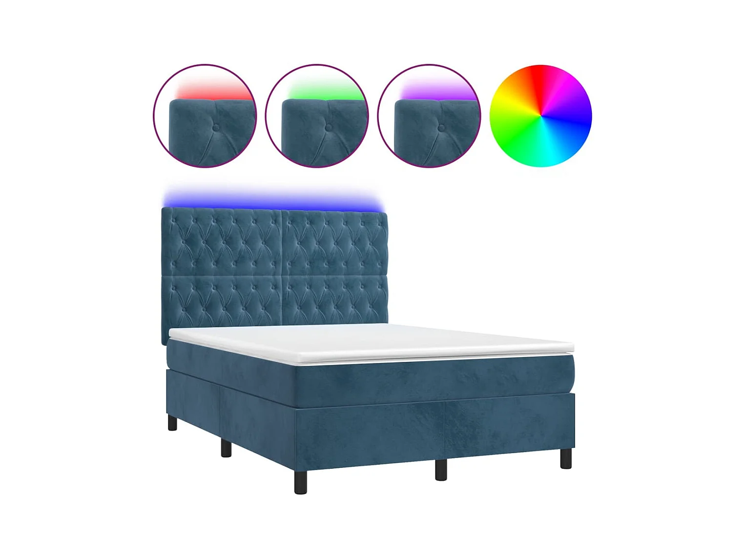 Sommier à lattes de lit matelas et LED Bleu foncé 140x200