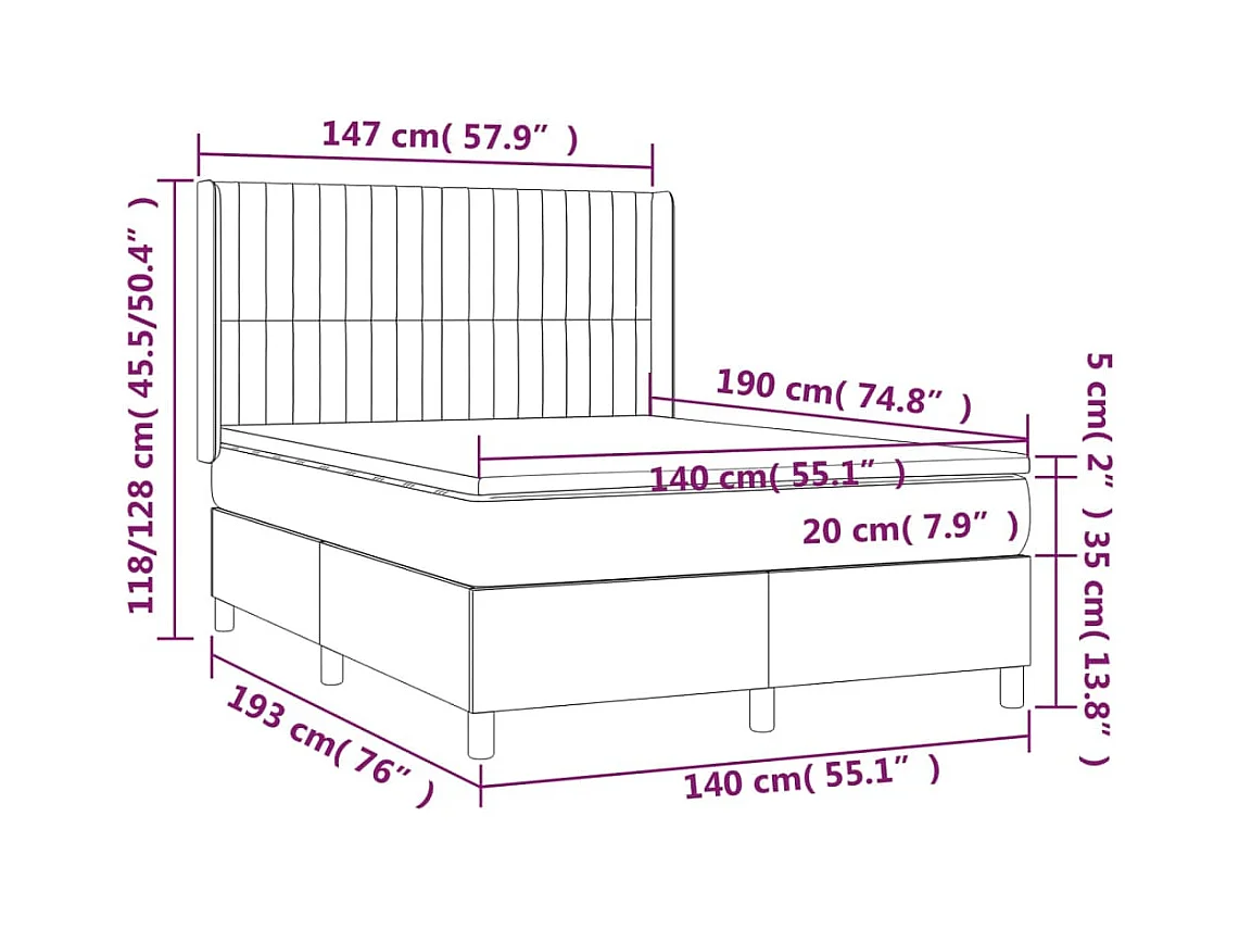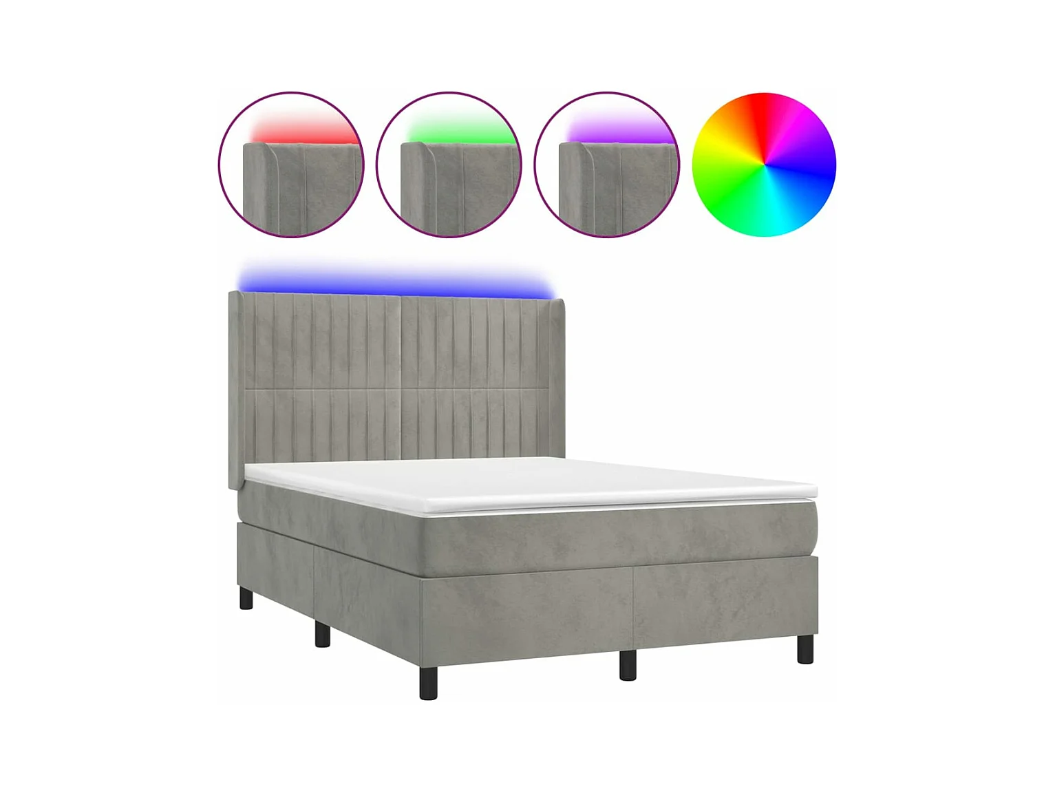 Sommier à lattes de lit matelas et LED Gris clair 140x190