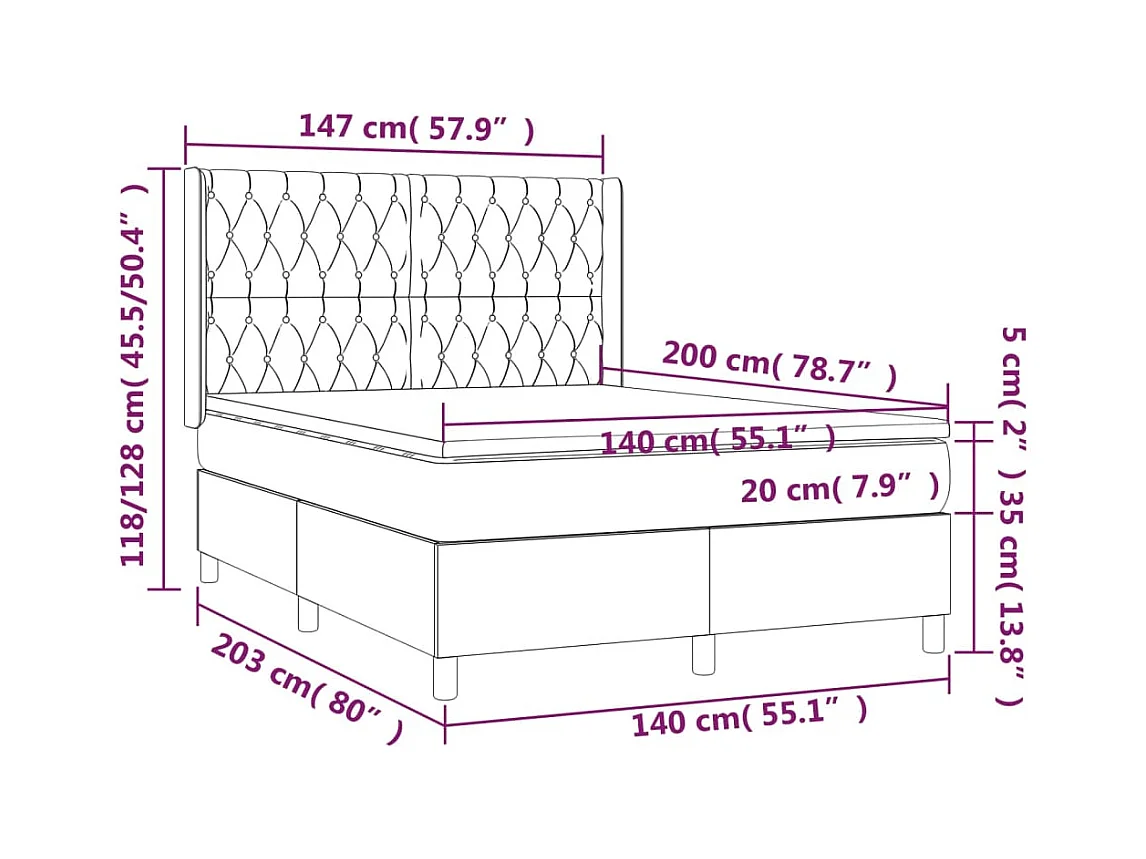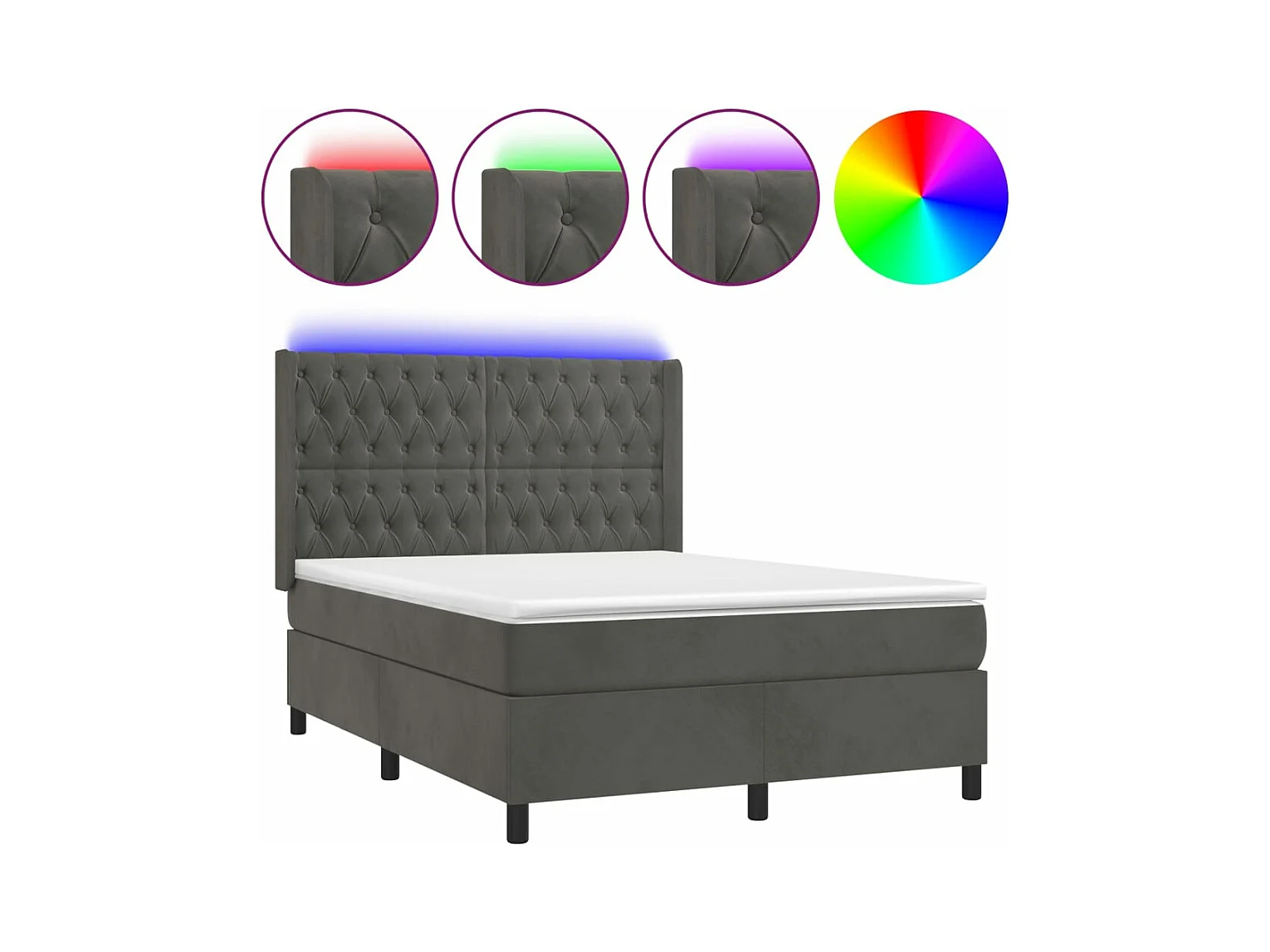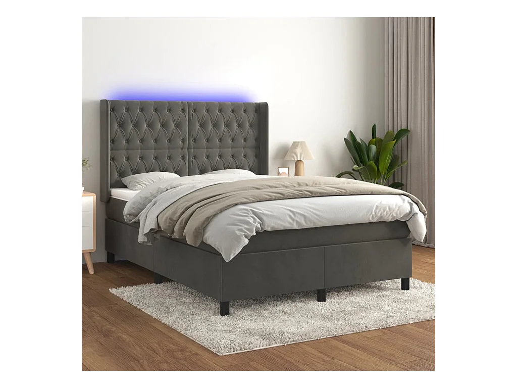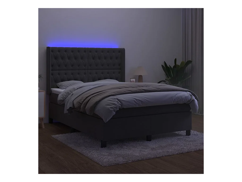 Sommier à lattes de lit matelas et LED Gris foncé 140x200