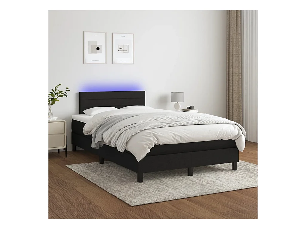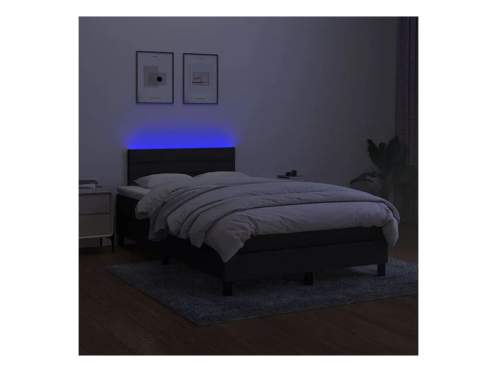 Sommier à lattes de lit matelas et LED noir 120x190 tissu