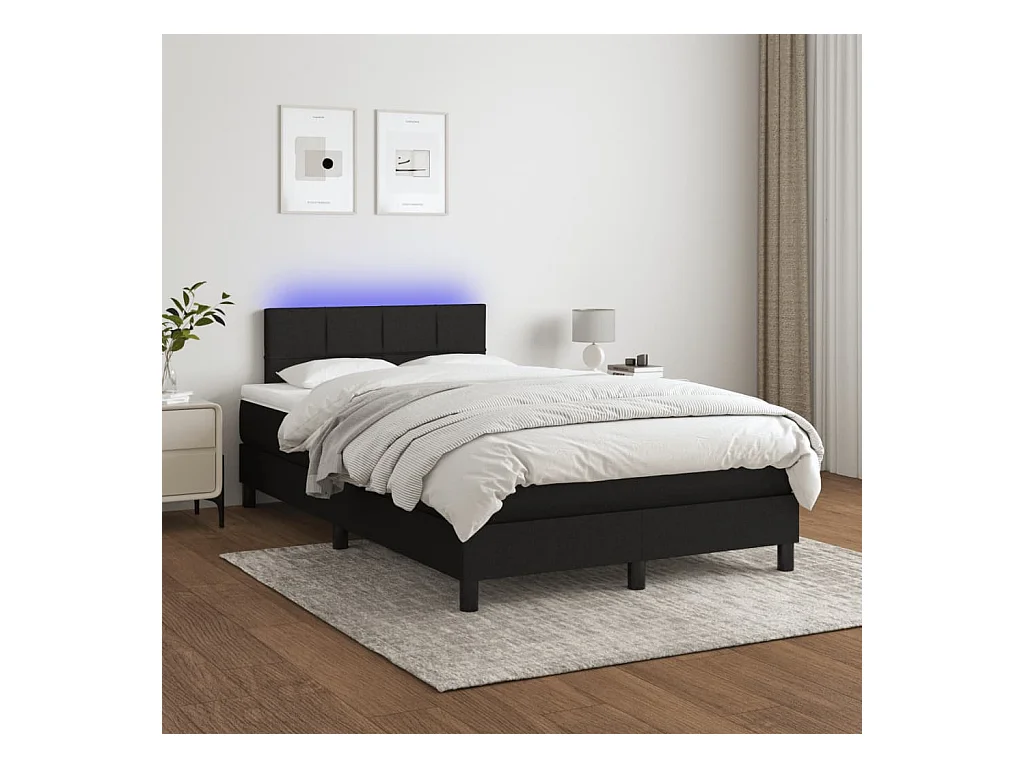 Sommier à lattes de lit matelas et LED noir 120x190 tissu