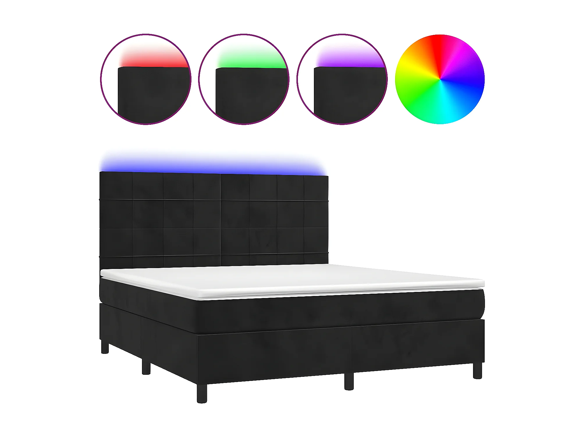 Sommier à lattes de lit matelas et LED Noir 180x200 Velours